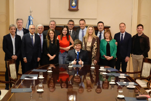 Con un fuerte operativo de seguridad, vallados en cada esquina y las cámaras apuntando al ingreso principal, Javier Milei encabezó esta mañana una de las reuniones más tensas desde que asumió la Presidencia.